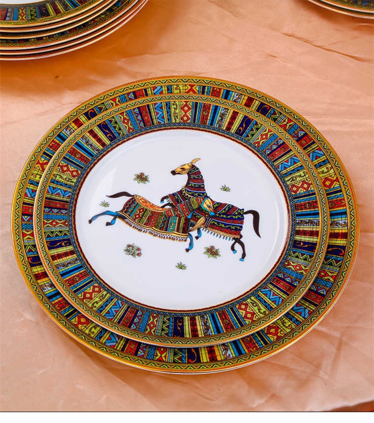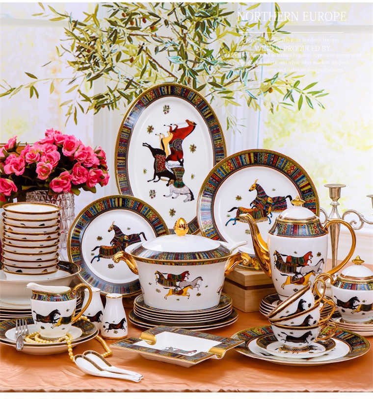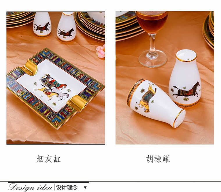 77頭巴比倫愛馬仕,一個(gè)湯煲,一個(gè)12寸魚盤,一個(gè)10寸魚盤,六個(gè)12寸月光盤,六個(gè)7.5寸平盤,兩個(gè)8寸湯盤,六個(gè)8寸平盤,一個(gè)九斗,一個(gè)煙灰缸,兩個(gè)胡椒粉罐,四個(gè)5寸味碟,十個(gè)4.5寸飯碗,十個(gè)小馬戈,一個(gè)大馬戈,十個(gè)筷子架,一個(gè)咖啡壺,一個(gè)糖缸,一個(gè)奶罐,六個(gè)咖啡杯,六個(gè)咖啡碟。
