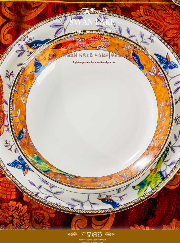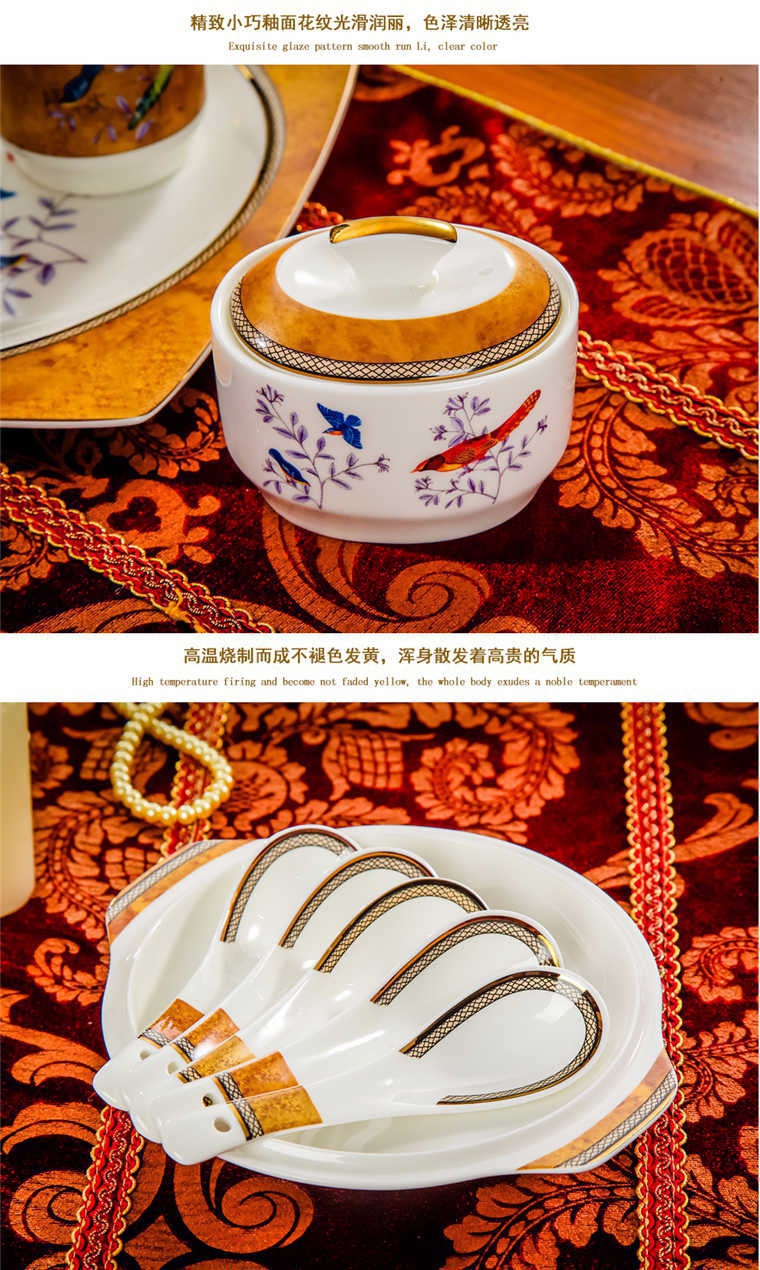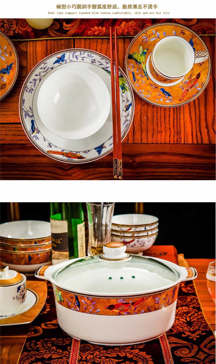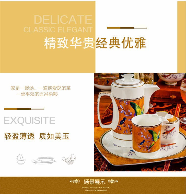 78頭愛丁堡餐具,一個(gè)湯煲,一個(gè)魚盤,一個(gè)十寸盤,一個(gè)飯勺,一個(gè)花籃,兩個(gè)醋料壺,一個(gè)牙簽筒,雙層果盤一個(gè),十個(gè)4.5寸的碗,十個(gè)調(diào)羹,十個(gè)筷子架,六個(gè)8寸盤,兩個(gè)9寸盤,六個(gè)面碗,四個(gè)碗蓋,一打筷子,另外咖啡具有六個(gè)杯子,六個(gè)碟子,一個(gè)壺,一個(gè)糖缸,一個(gè)奶罐。