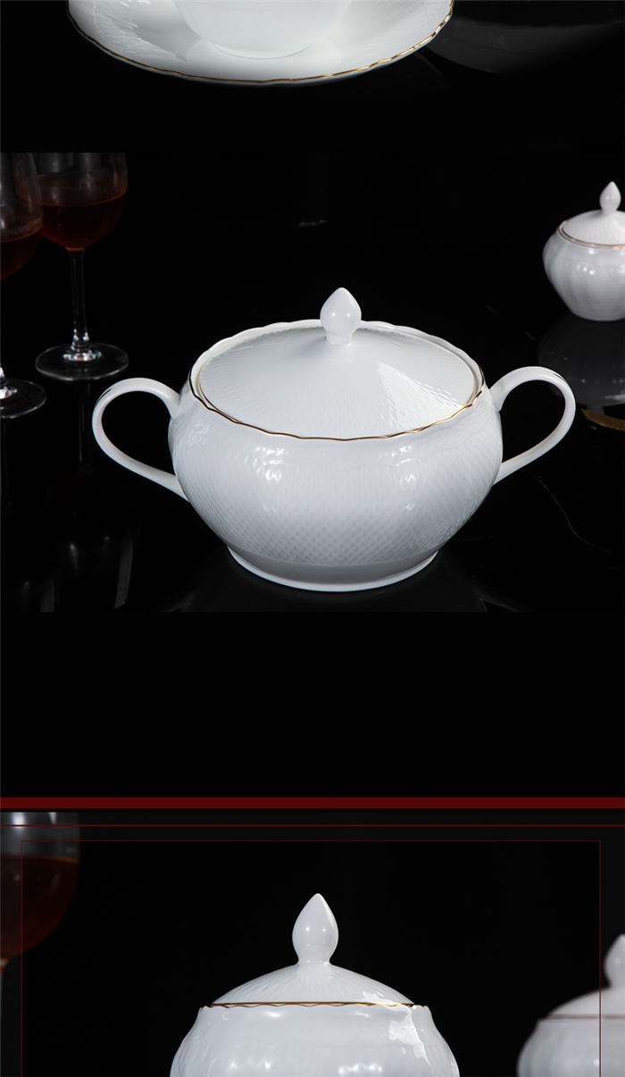 碗十個,6寸骨盤十個,盤子十個,小勺十個,筷子架十個,面碗四個,燉盅二個,魚盤一塊,十寸大圓盤一塊,湯煲一個,大飯勺一個,果盤二塊,胡椒瓶二個。