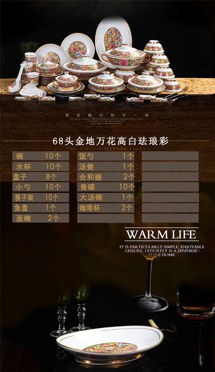碗十個(gè),水杯十個(gè),盤子八個(gè),小勺十個(gè),筷子架十個(gè),魚盤一個(gè),面碗二個(gè),飯勺一個(gè),湯煲一個(gè),和合器二個(gè),骨碟十個(gè),大湯碗一個(gè),咖啡杯二個(gè)。