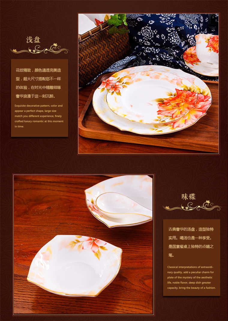 73頭美斯帶咖啡具,餐具一個湯煲,一個魚盤,一個十寸平盤,一個大湯勺,一個煙缸,一個牙簽筒,兩個面碗,十個八寸盤,十個4.5寸飯碗,十個味碟,十個調(diào)羹,十個筷子架??Х染咭粋€咖啡壺,一個糖缸,一個奶罐,六個杯子,六個碟子。